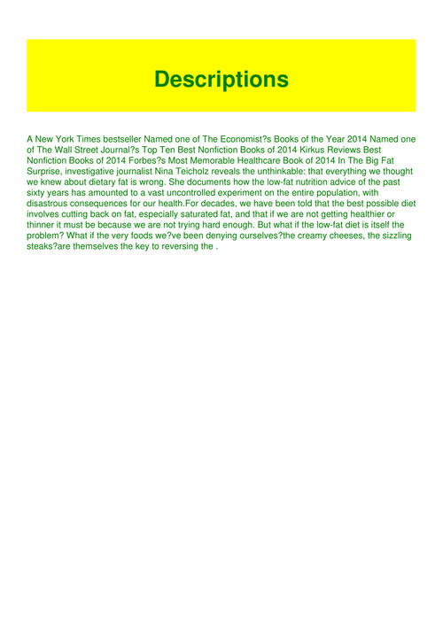 The big fat surprise. Buy the big fat surprise. Why butter meat and cheese belong in a healthy diet revised edition by nina teicholz isbn. Why butter meat cheese belong in a healthy diet.